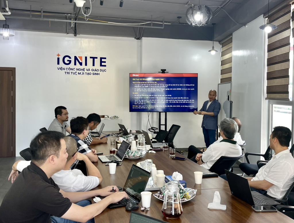 On the afternoon of September 3, 2025, the Institute of Technology and Education for New Generative Intelligence (IGNITE) organized a scientific seminar themed "'Khoan 10' for Science, Technology, Innovation, and Digital Transformation to Pave the Way for Breakthrough Development." The presenter was Mr. Nguyen Tu Quang – CEO of Bkav, Chairman of the AI Committee of the Vietnam Software and IT Services Association (VINASA), and Member of the Prime Minister's Policy Advisory Council. The event was attended by over 20 scientists, experts, and business representatives.